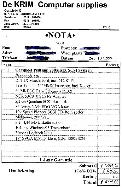 De volgende computer heb ik in 1997 samen laten stellen bij een
